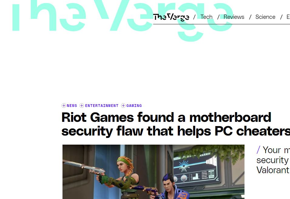 【全国网科技轮廓报说念】12月19日音尘,theverge报说念,拳头游戏(Riot Games)近日露馅紧要安全隐患:近期多款主板存在安全缝隙,舞弊者可借助该缝隙绕过反舞弊检测,杀青不公说念游戏。当今,华擎、华硕、技嘉、微星等主流主板厂商已紧迫发布BIOS更新补丁,以设立此问题。
