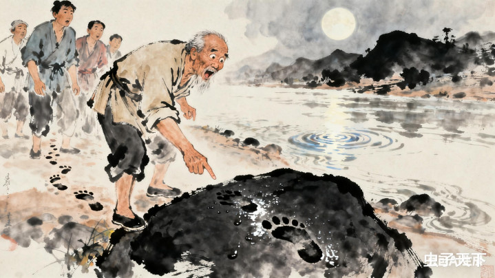 有个老夫追出去,只看见黑石头旁有片湿脚印,再没别的陈迹。