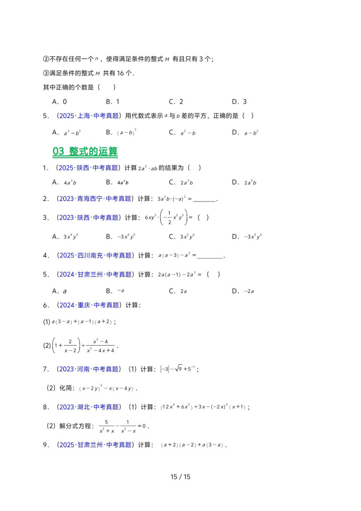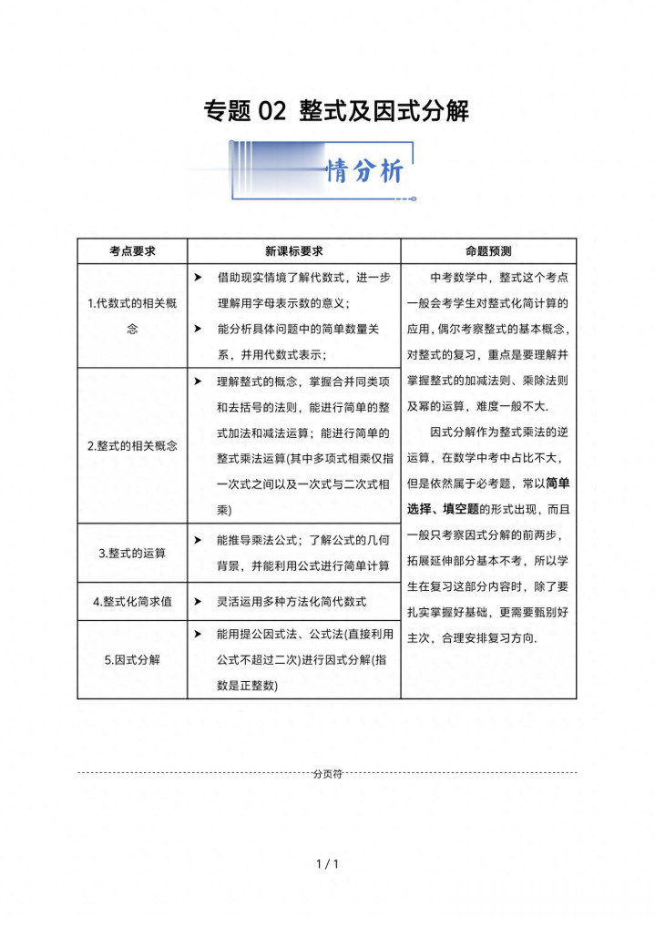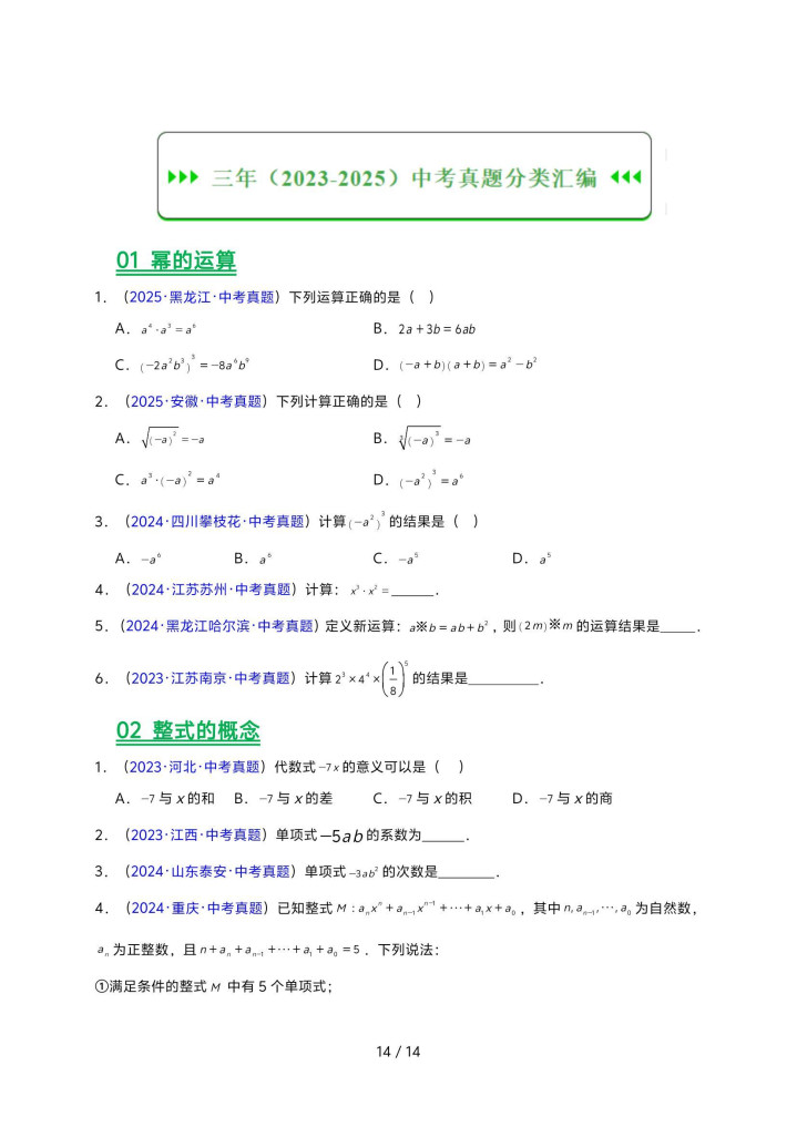 - 中考数学整式与因式看法温习系列, 学问点训诫精明, 环球跟上节拍2025-12-19