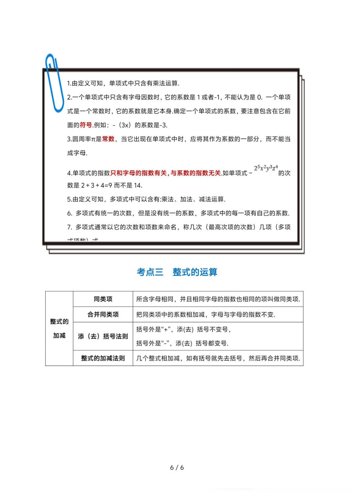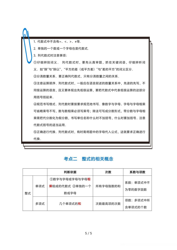 中考数学整式与因式看法温习系列, 学问点训诫精明, 环球跟上节拍